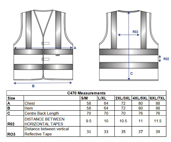 Kamizelka ostrzegawcza wyposażona w pionowe i poziome taśmy odblaskowe , co znacznie podnosi widoczność