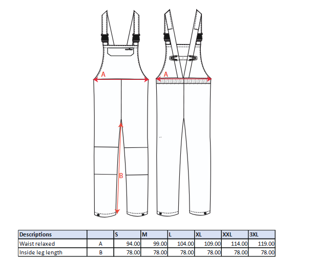 Spodnie wodoodporne ,pokryte środkiem przeciwgrzybiczym i odporne na 10% wodorotlenek sodu.