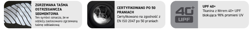 · Tkanina z filtrem 40+ UPF blokująca 98% promieni UV